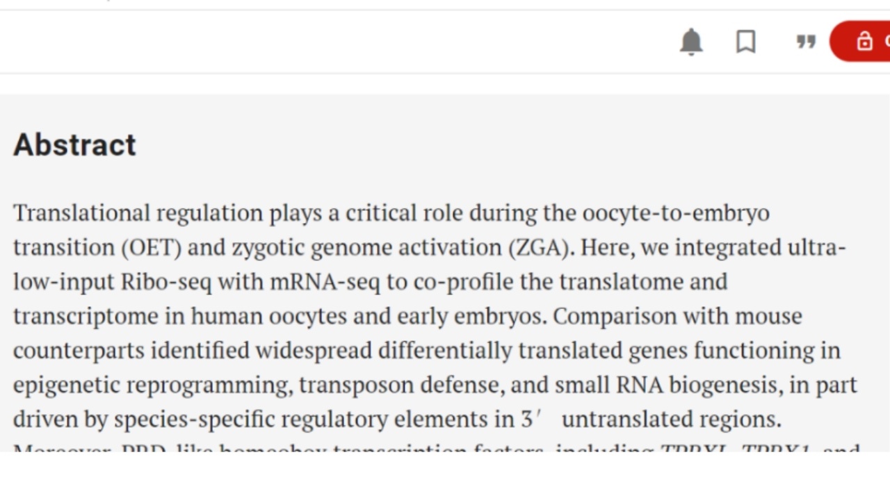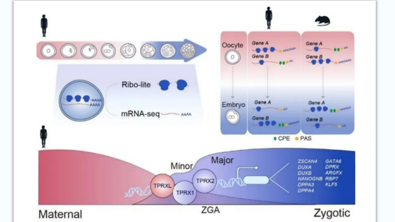 该研究绘制了人类卵子向早期胚胎转变过程中的翻译图谱,发现了一组重要的调控人类合子基因组激活和早期胚胎发育的关键转录因子,首次报道了人类与小鼠在卵子向早期胚胎转变过程中,翻译水平动态变化存在物种差异。该研究为人类早期生命探索、胚胎质量评估、生殖疾病研究提供了新方向,为提高生殖健康水平和预防出生缺陷奠定了重要基础。